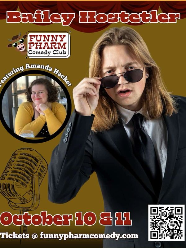 Bailey Hostetler Headlines his home comedy club! For every comedian who tours the U.S. Having the opportunity to headline the comedy club where you started is a big deal. We think it's a big deal and you will too! Don't miss your chance to cheer on our local hero as he debuts his new extended show at the Funny Pharm, Goshen Indiana. week.Funnypharmcomedy.com